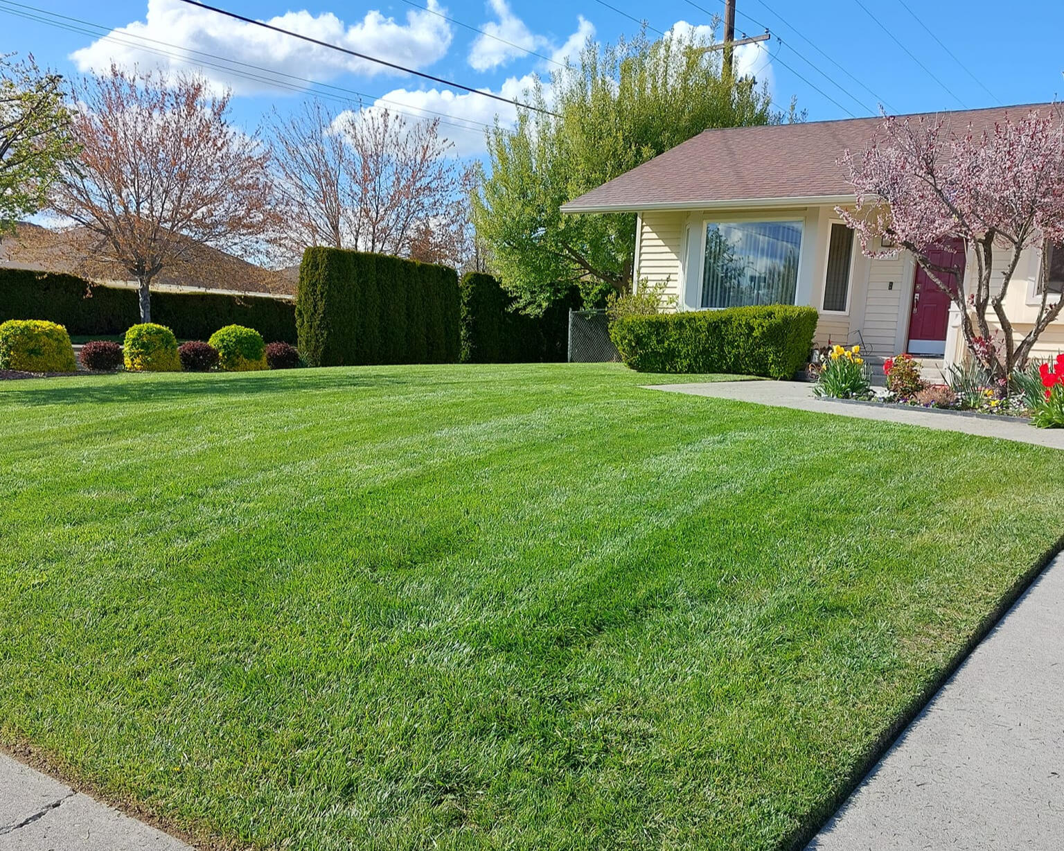 We offer mowing every week or every 10 days, edging, thatching, aerating, fertilizer, sprinkler repair, weed removal, trimming and more!